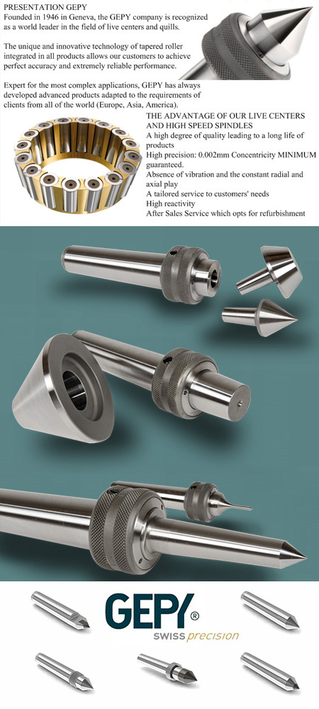 GEPY公司位于瑞士,精磨柱轴承在超高转速驱动轴和机床尾座活顶尖。轴向和径向均消除了偏振,超高精度和超高转速!